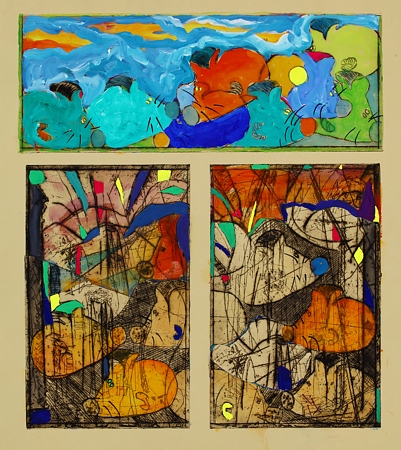 Toy Mouse Series (2004-2008) T.M.S. #2, 14" x 18" Acrylic and prismacolor pencil T.M.S. #7, 21" x 18" Drypoint, gouache, and watercolor T.M.S. #13, 22" x 19" Drypoint, acrylic and gouache The Good Father, 40" x 30" Acrylic and prismacolor pencil T.M.S. #16, 23" x 19" Drypoint and acrylic" Mouse Color Guide, 22" x 18" Drypoint, gouache and watercolor Tortuga de Judit, 25" x 37" Oil